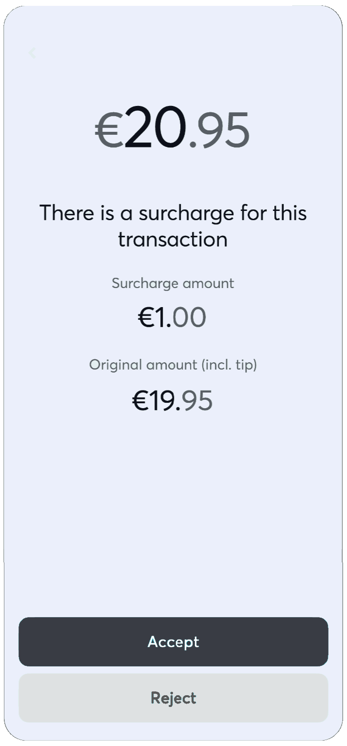 Customers may skip the surcharge by selecting the Skip surcharge option from the menu during the payment flow.